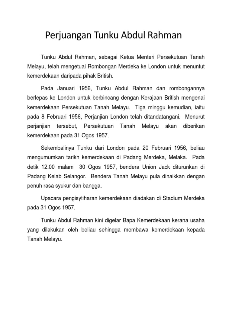 Perjuangan Tunku Abdul Rahman Pdf